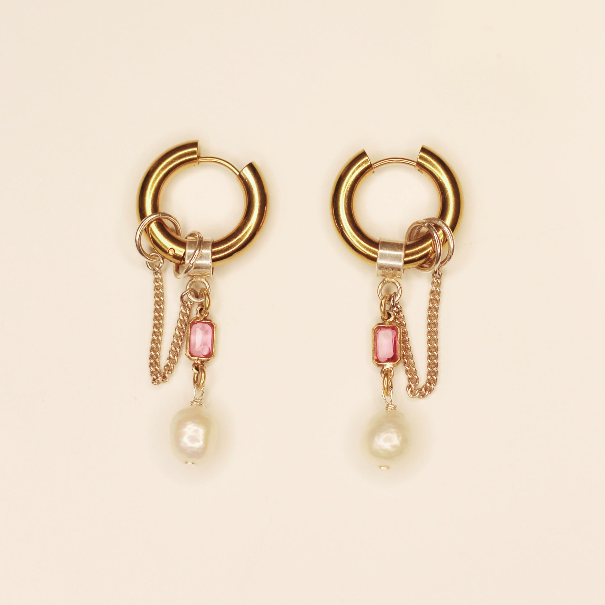 Ces boucles d’oreilles sont composées de matériaux durables tels qu’une perle d'eau douce des Philippines, du plaqué or, de l’argent et de l'acier inoxydable.