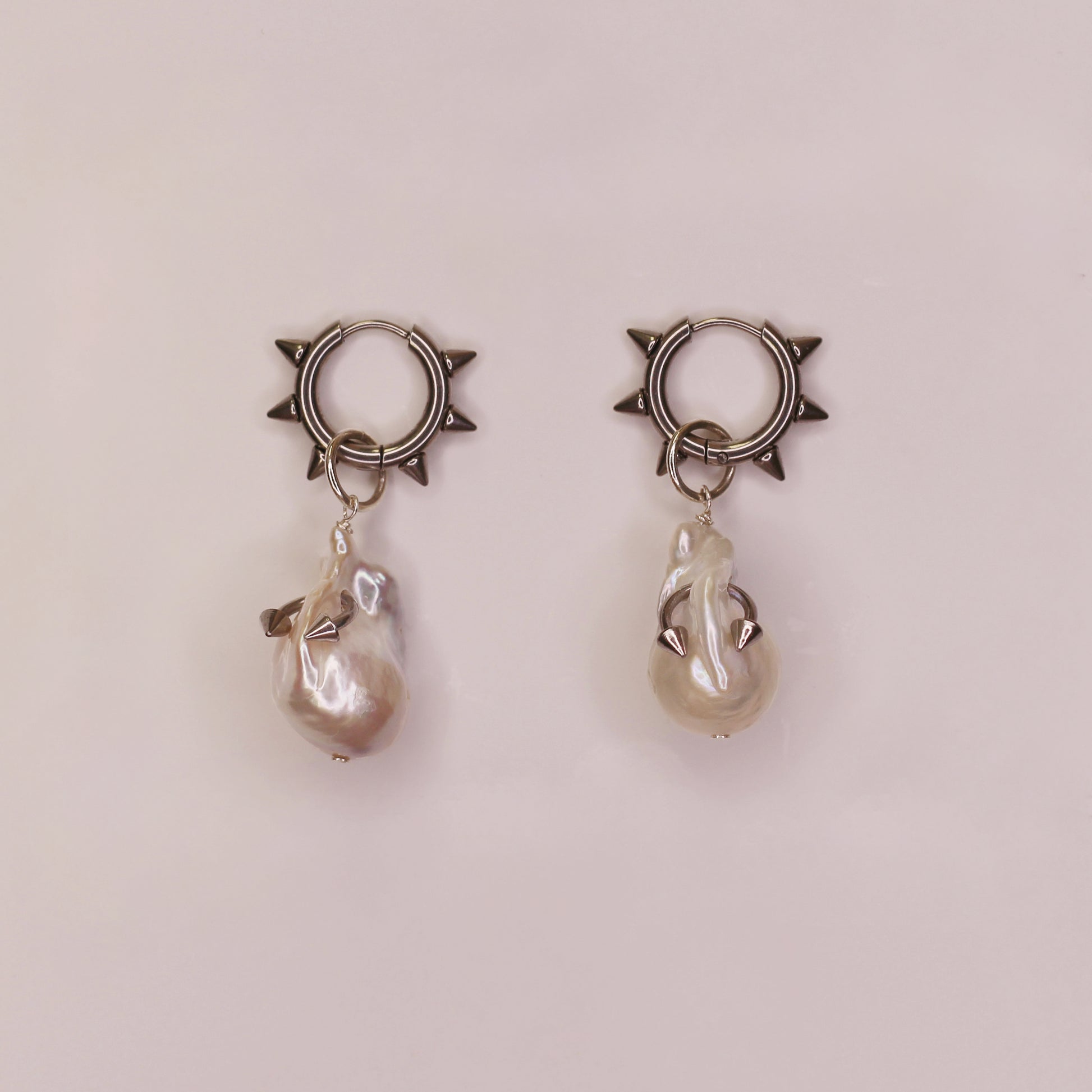 Ces boucles d'oreilles upcyclées sont composées de matériaux durables tels que des perles d'eau douce baroques des Philippines, de l'argent et de l'acier inoxydable.